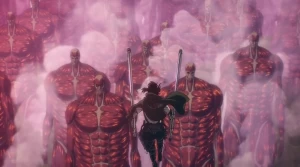 Финальный сезон, заключительная глава. Главные герои популярного аниме прошли через множество испытаний. Все началось с того, что люди пребывали в неведении, они считали себя последними людьми в этом мире, и что им уготована участь быть съеденными титанами. По мере развития сюжета мы узнали о том, что люди, которые живут на острове называются эльдийцами, они являются изгоями, ведь в их крови ждет своего пробуждения сила титанов. Кроме того они способны передавать друг другу силу девяти титанов, которая является огромной. Каждый из девяти титанов отличается от другого внешними данными, и является обладателем собственных боевых умений. Герой по имени Эрен Йегер решает во что бы то ни стало защитить свой народ от всего внешнего мира и принимает решение активировать «дрожь земли», чтобы выпустить из стен всех спящих титанов. Освобожденные титаны пошли топтать все на своем пути. Армину, Микасе и многим другим пришлось объединить свои силы с напавшим на них государством, чтобы совместно остановить Эрена.